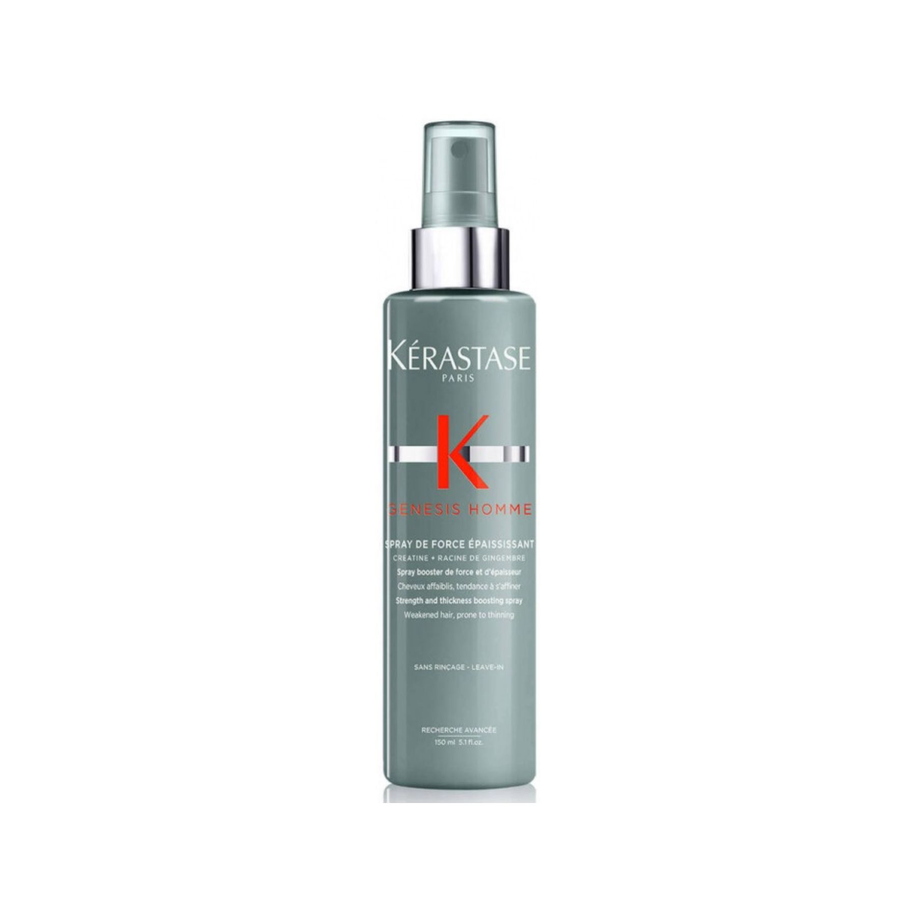 Kérastase Genesis Homme Strength and Thickness Boosting Spray 150ml is perfect to achieve a fuller-looking hair mass thanks to its volumizing and thickening properties. In fact, specially developed for men’s weakened and thinning hair, this formula is able to give the instant sensation of having more hair globally. Moreover, by resorting to a powerful cocktail of stimulating ingredients, this spray also reinforces and protects the hair fiber. In fact, while Ginger Roots shield the hair fiber from environmental damage and boost cell turnover, Creatine rebuilds the hair from the inside. The result? According to the brand, with a single application, the Genesis Homme Boosting Spray offers 25% more hair mass ad 5% increased hair diameter.