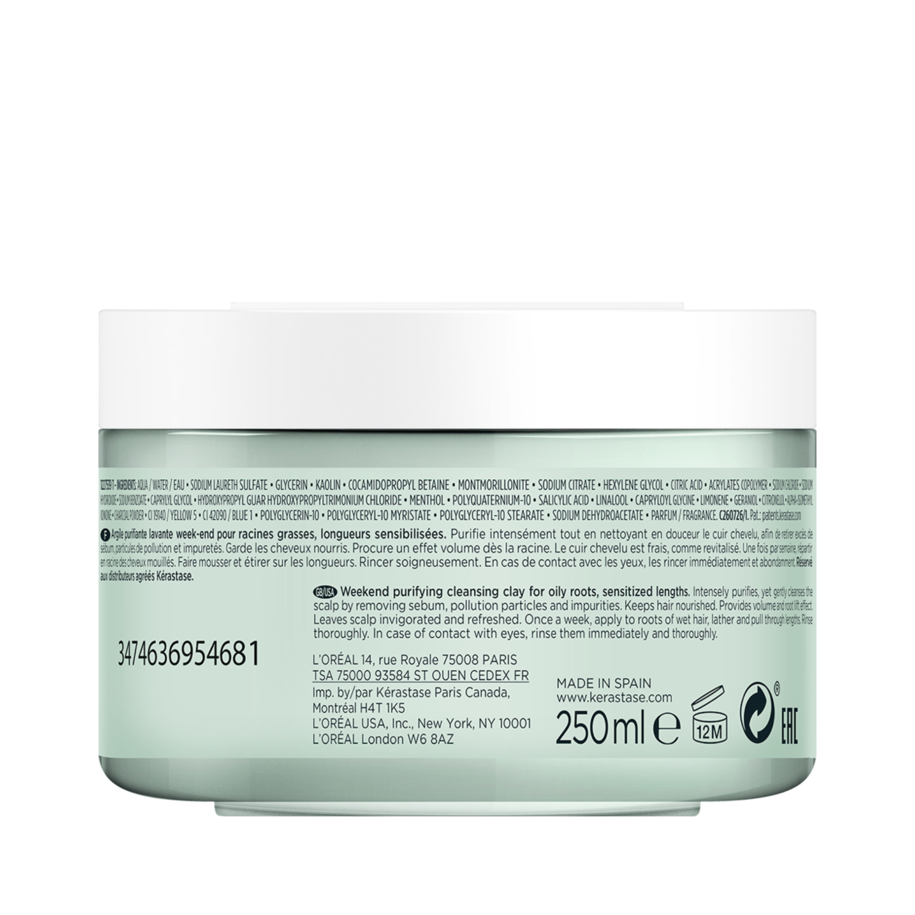 A purifying clay that deeply, yet gently cleanses and purifies the scalp. Helps balance sebum level on hair. Removing pollution & impurities without stripping. Leaves scalp feeling invigorated and refreshed. Adds more volume +74%*. Detangles hair +82%**. Provides a root lift effect. Nourishes hair. *VS. UNWASHED HAIR. **WHEN USED WITH MASQUE RÉHYDRATANT VS. NON-CONDITIONING SHAMPOO.