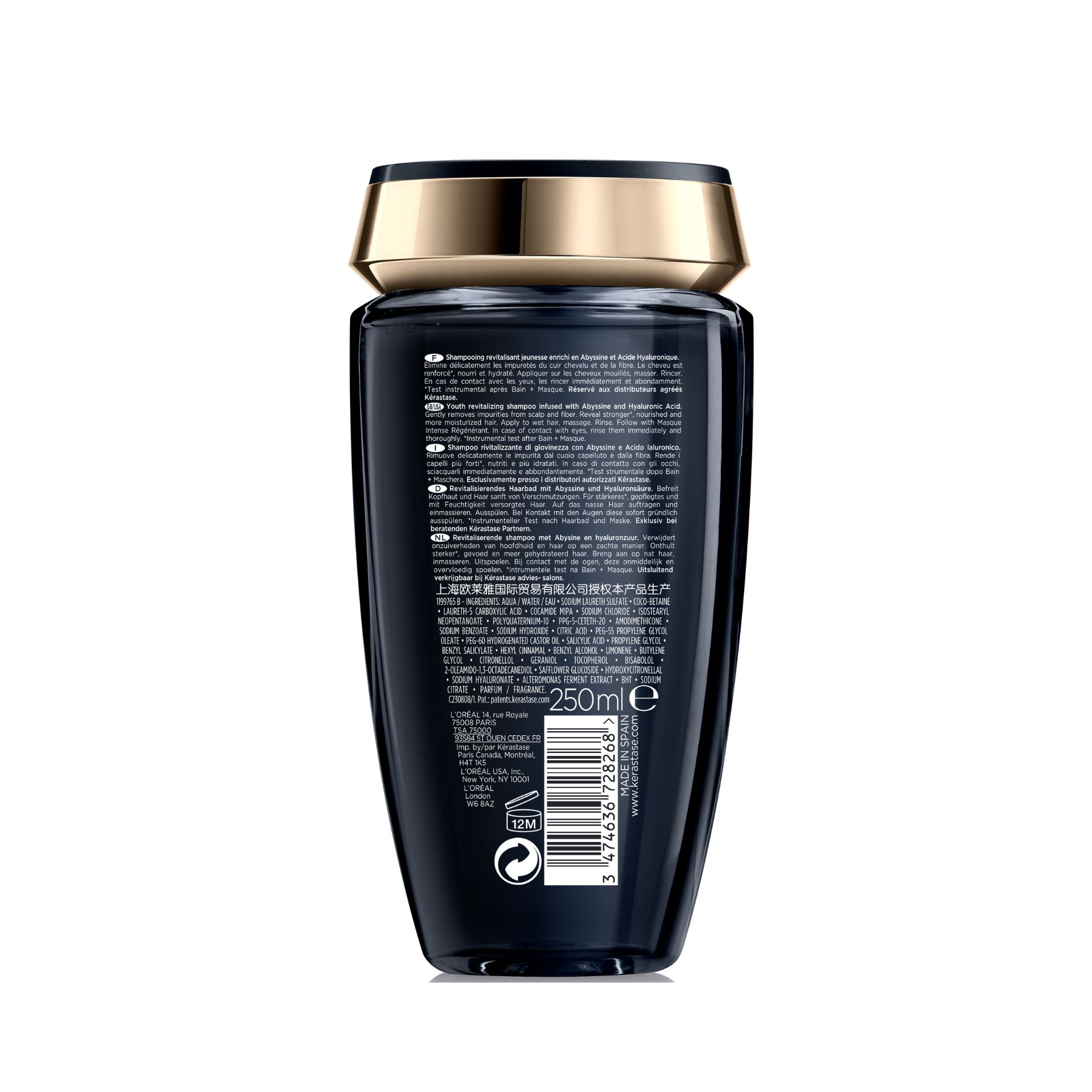 Apply Kérastase Chronologiste Bain Régénérant Shampoo 250ml to wet hair. Then, emulsify and gently wash the hair. Finally, rinse with plenty of water and reapply if necessary. Follow up with the other products in the same range.