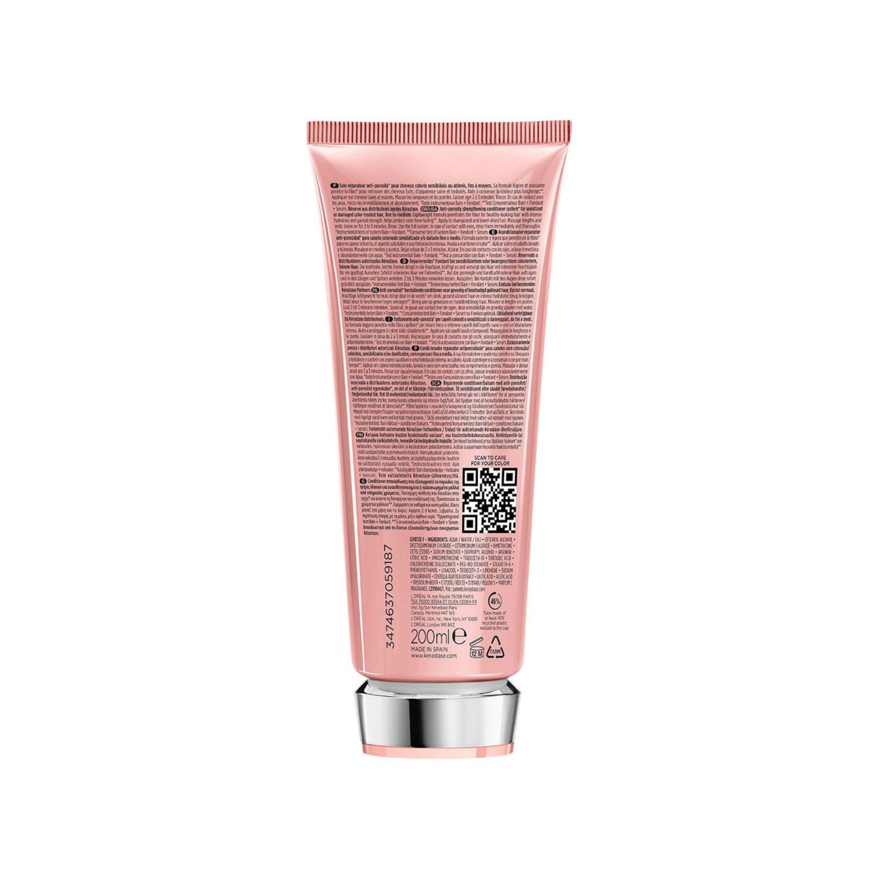 A powerful anti-porosity strengthening conditioner for all types of sensitised or damaged colour treated hair, mostly adapted for fine to medium fibre.