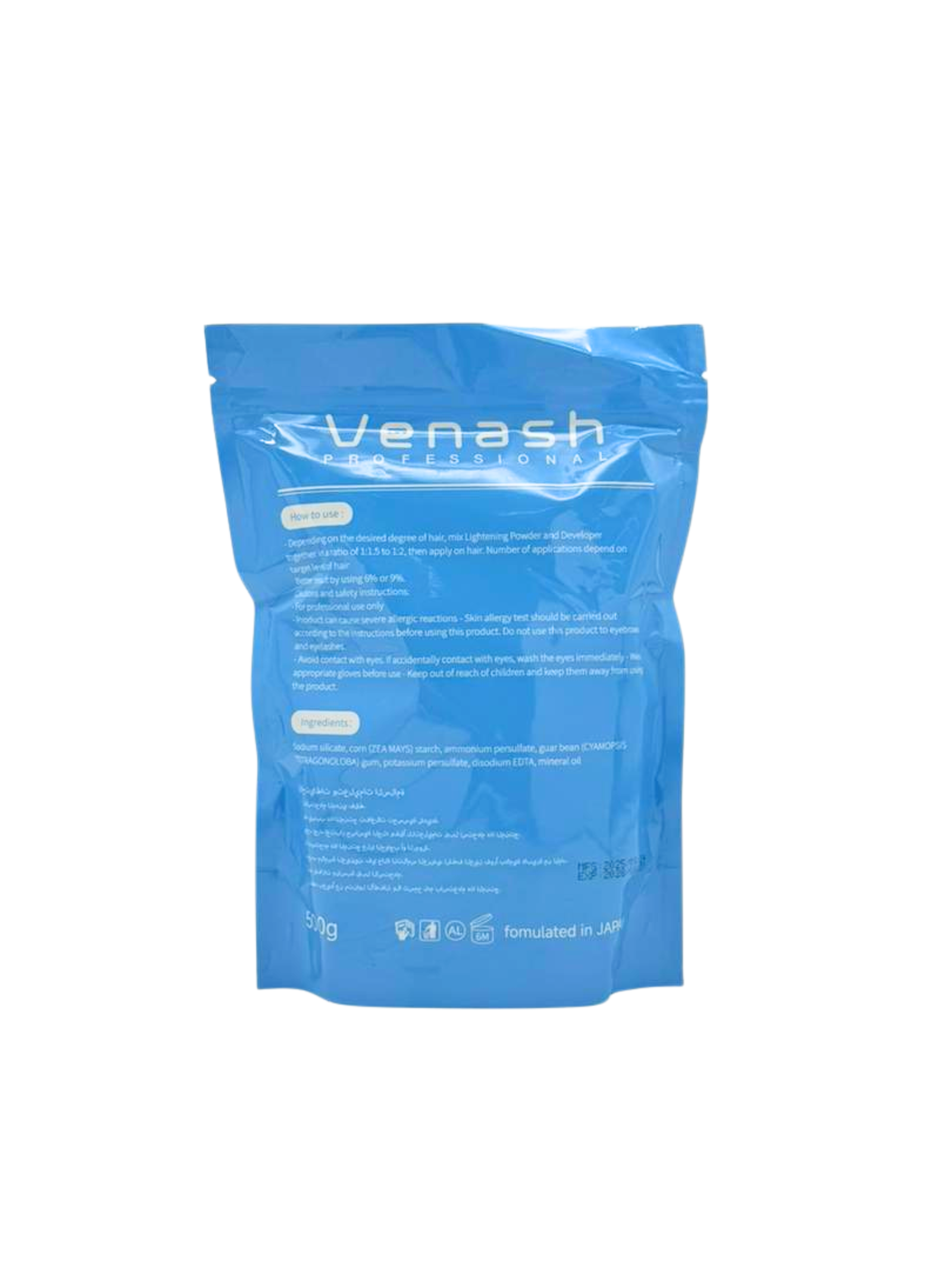 • Depending on the desired degree of hair, mix Lightening Powder and Developer together in a ratio of 1:1:5 to 1:2, then apply on hair. Number of applications depend on target level of hair.